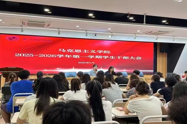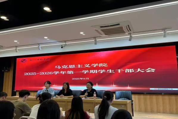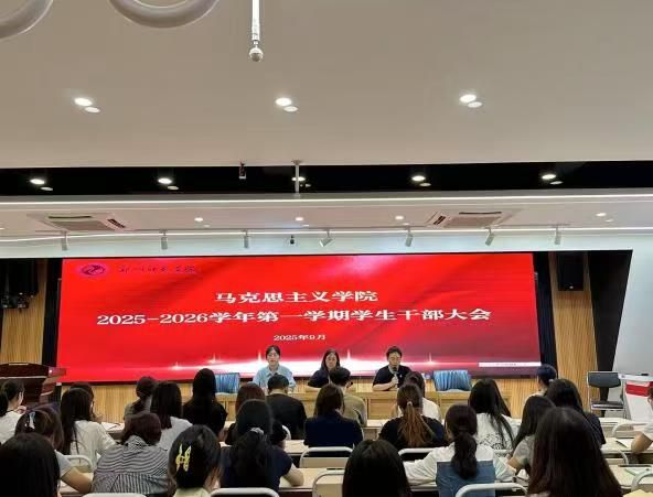2025年9月2日下午,马克思主义学院在文博楼B309会议室召开新学期学生干部大会。马克思主义学院党总支副书记冯红岩、团总支副书记冯婉祺、辅导员王卫花、及全体学生干部参加本次会议。