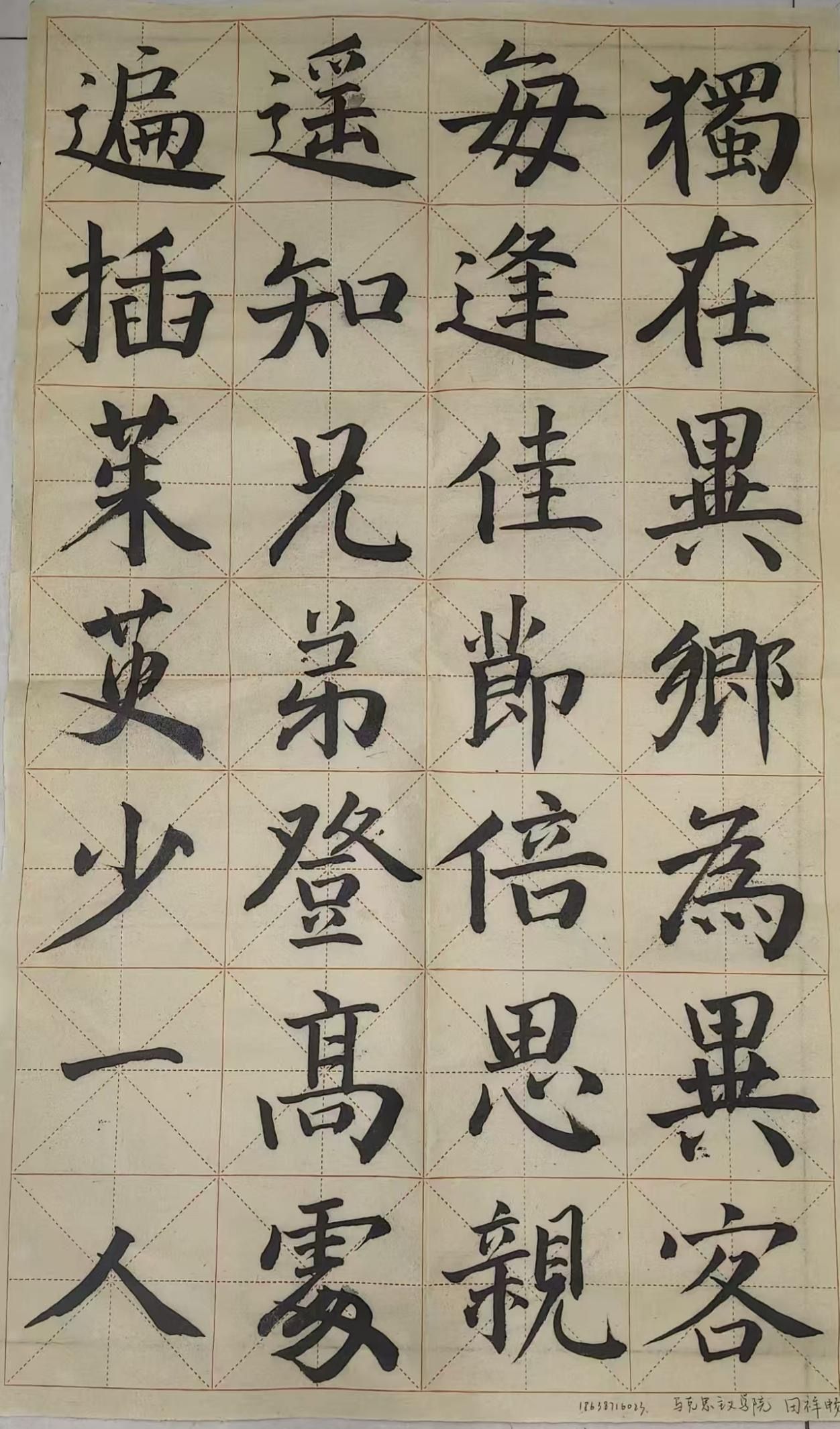 本次活动期间,同学们围绕“敬老”主题,书写“椿萱并茂,棠棣同馨”等感恩寄语,用真挚文字祝愿亲人身体健康;聚焦“登高”习俗,深挖传统节日文化内涵,挥毫誊写“遥知兄弟登高处,遍插茱萸少一人”等经典诗句,于字里行间感受古人登高望远的豪情与思念;结合“赏菊”雅趣,创作“菊酒盈袖”“东篱品菊”等雅致文案,以笔墨传递秋日清韵与高洁品格。创作形式多样,同学们在提笔落划中体验书写仪式感,在经典语句中体悟孝亲之道、自然之美的文化内核,让中华优秀传统文化在实践中得以传承与活化。