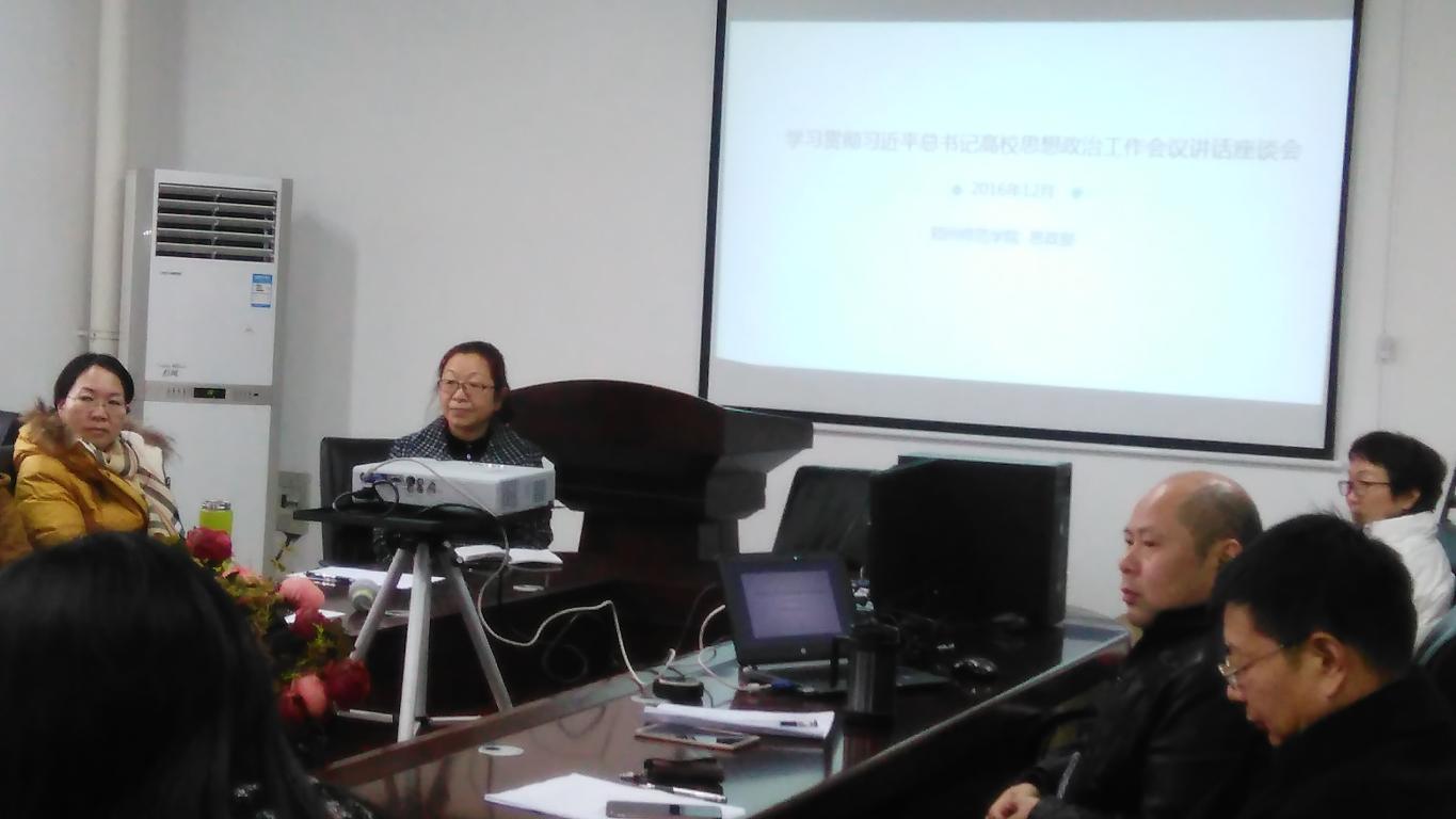 12月13日下午,思政部召开学习贯彻习近平总书记在全国高校思想政治工作会议讲话精神座谈会。参加此次会议的有:校党委副书记弓民同志及思政部全体教师。