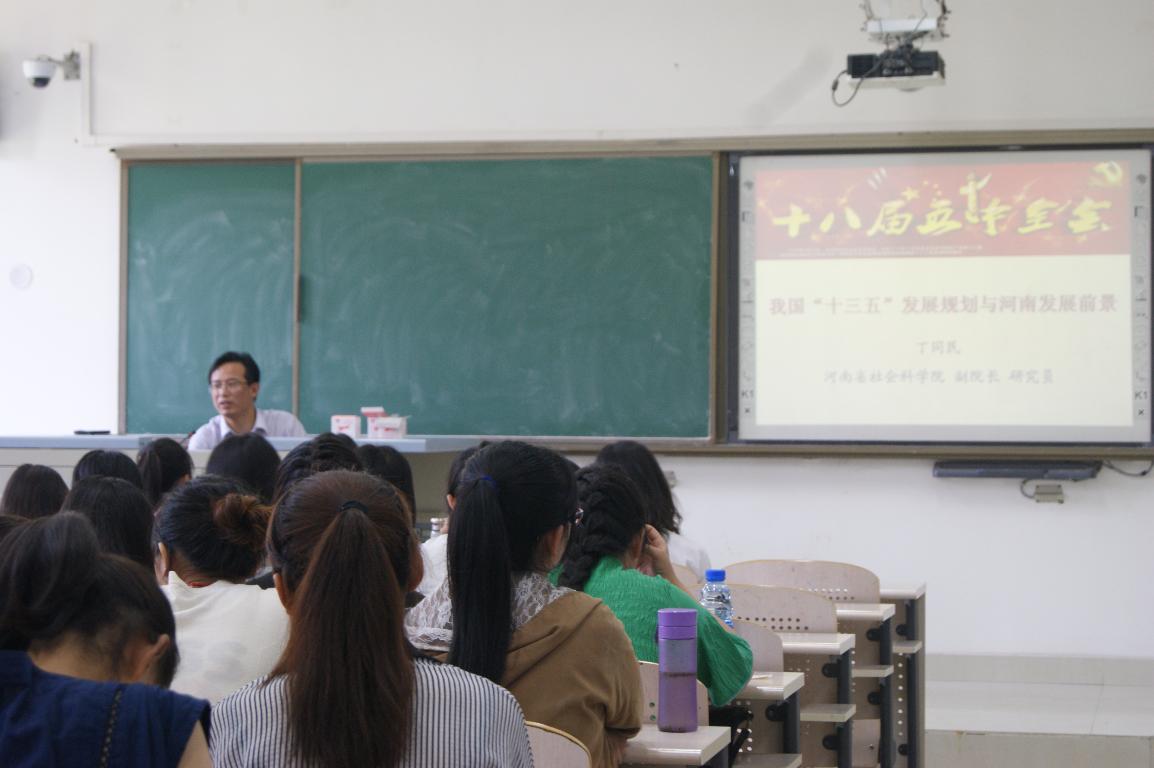 为落实教育部关于形势与政策课专兼结合邀请校外专家讲座的要求,4月29日思政部有幸邀请到河南省社科院副院长丁同民到我校为大学生作《我国“十三五”发展规划与河南发展前景》的报告。思政部教师、地理学院15级学生参加了报告会。