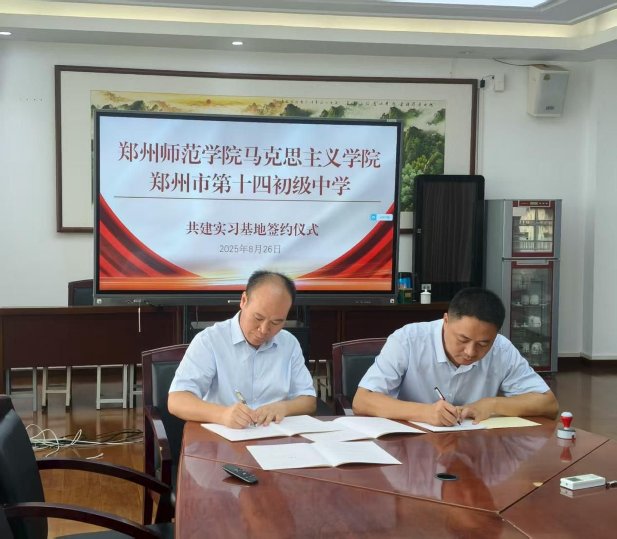 8月26日上午,院长任先国带领学院团队,先后赴郑州市第十四中学、高新区尚文中学、高新区第二中学、郑州市创新实验中学举行师范生实习基地签约仪式,为学院思政专业师范生搭建优质实践育人平台。马克思主义学院院长任先国、实验与实践教学中心副主任黄鲁燕、思政系主任杨丽宁、以及四所实习基地学校的负责人共同出席签约会议。