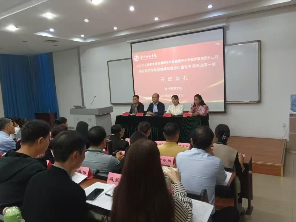 9月18日下午,由郑州师范学院承办的中小学教师素质提升工程师德师风常态化建设专项培训班开班典礼在郑州师范学院崇仁楼一楼会议室举行。郑州师范学院马克思主义学院培训项目管理团队以及来自许昌和平顶山各中小学的教师齐聚一堂,共同开启为期 5天的研修之旅。
