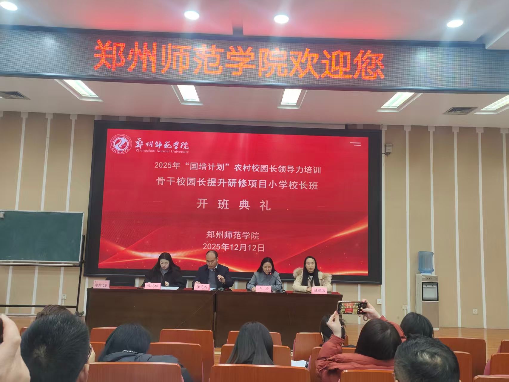 12月12日下午,由郑州师范学院马克思主义学院承办的“国培计划”农村校园长领导力培训骨干校园长提升研修项目小学校长班开班典礼在郑州师范学院西校区崇仁楼二楼东报告厅举行。郑州师范学院马克思主义学院培训项目管理团队以及来自三门峡、周口、济源等地的校长齐聚一堂,共同开启了为期12天的研修之旅。