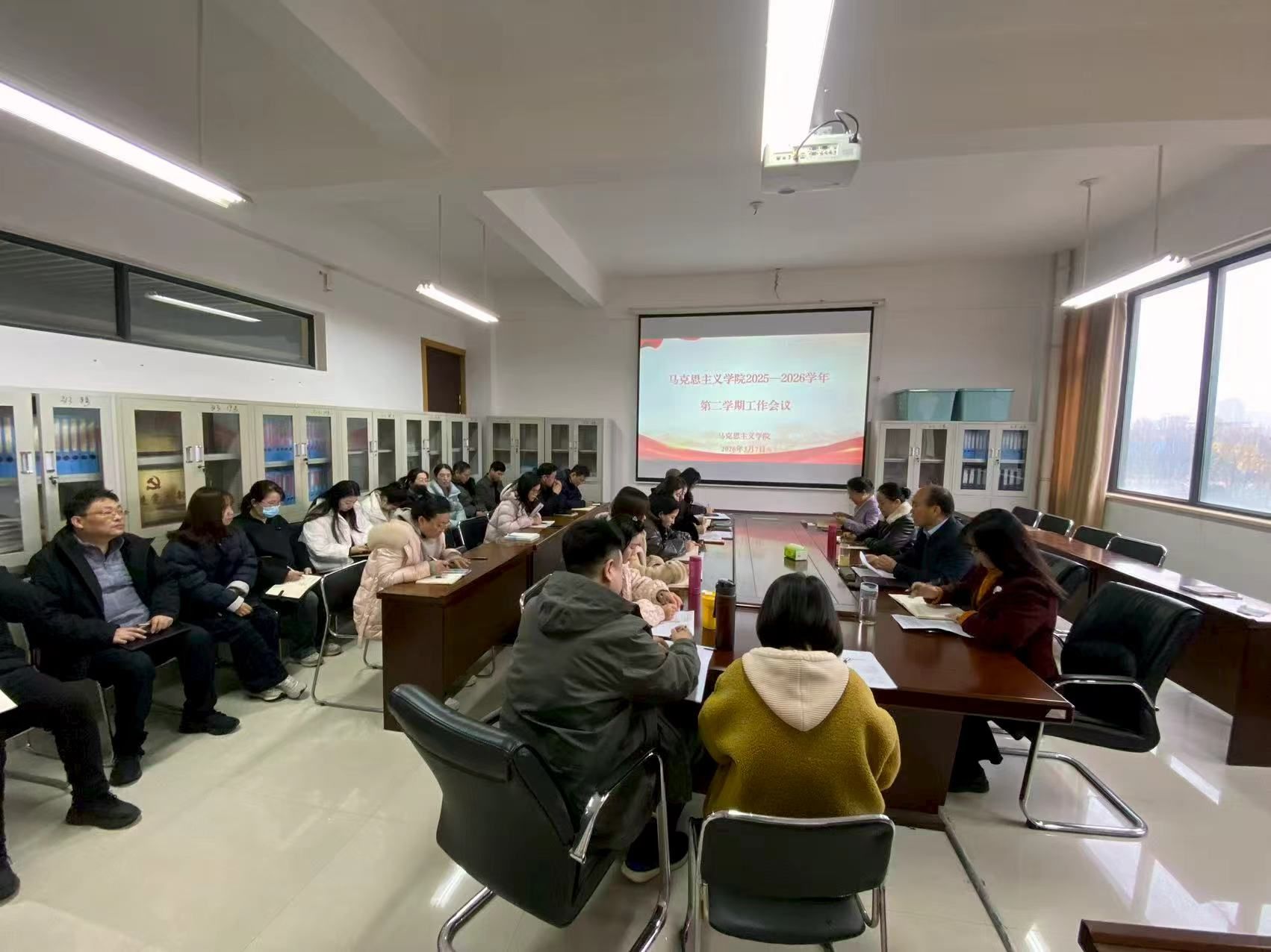 3月7日上午,马克思主义学院在文博楼C415会议室召开新学期工作会议。学院领导班子成员、全体教职工参加会议。