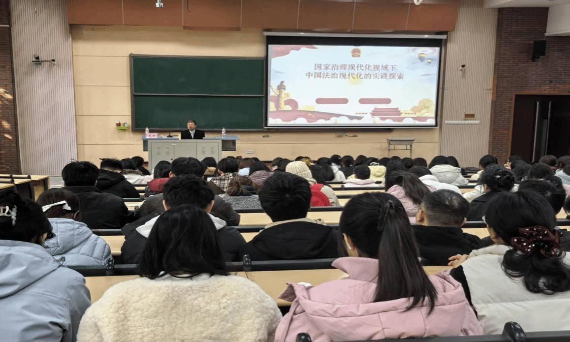2026年3月11日下午,我院邀请北京高文律师事务所郑州办公室党支部书记尚涛律师做了题为《国家治理现代化视域下中国法治现代化的实践探索》的报告,学院全体学生以及骨干教师参加,院长任先国主持报告会。