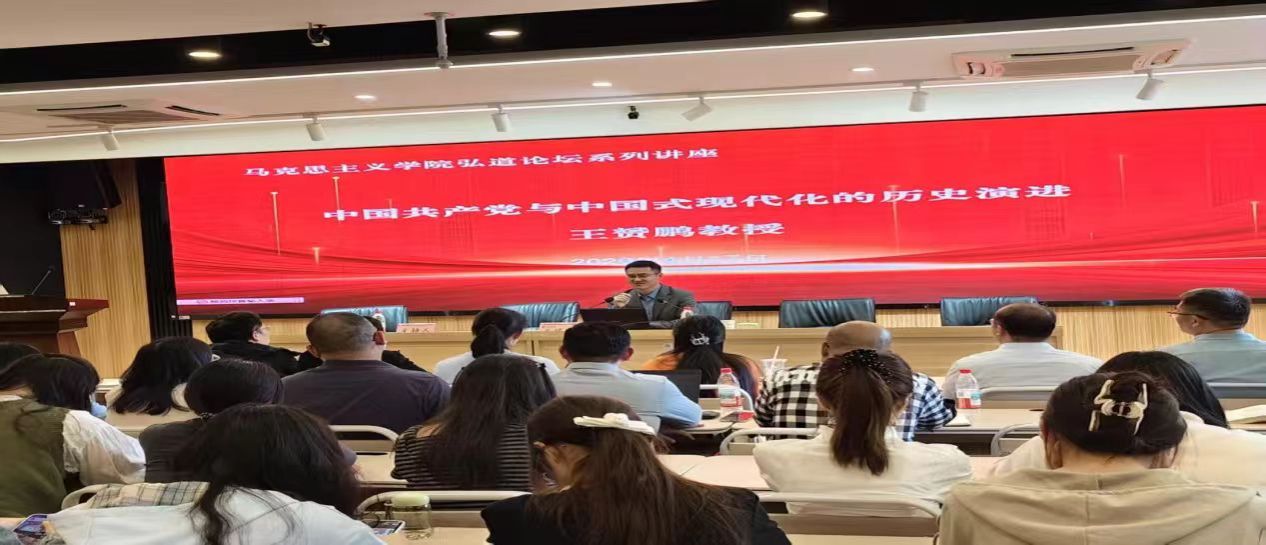 为深入贯彻落实新时代立德树人工程,深入推动思政课建设高质量发展,2026年4月17日,我院特邀中国人民大学王赟鹏老师作题为《以中国式现代化全面推进中华民族伟大复兴的必然逻辑》的专题讲座,本次讲座由马克思主义学院院长任先国主持,郑州工程技术学院马克思主义学院于书伟院长及其教师团队,我院师生共同参会聆听。