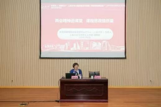 随后,顾晓英教授分享了上海大学在课程思政领域的创新探索与标志性成果:从“项链模式”到“大国方略”,打造出独具特色的思政课 “上大风景”;从单一 “思政课” 到全域 “课程思政”,构筑起各类课程协同育人的生动图景;从 “校内项链” 到 “全国项链”,形成了党史课跨校联盟的育人新生态。这些前沿实践与成熟经验,为我校课程思政提质增效提供了鲜活范例与重要借鉴。此次讲座推动了两会精神在我校落地,为深化课程思政改革、提升育人质量注入新动力。