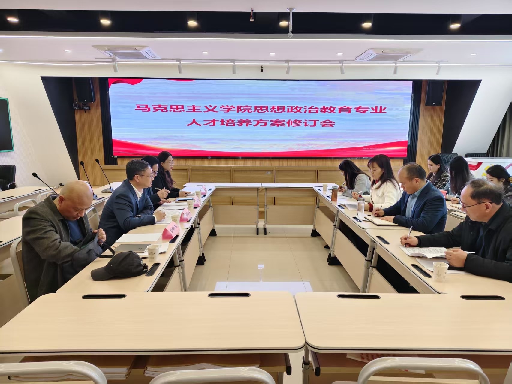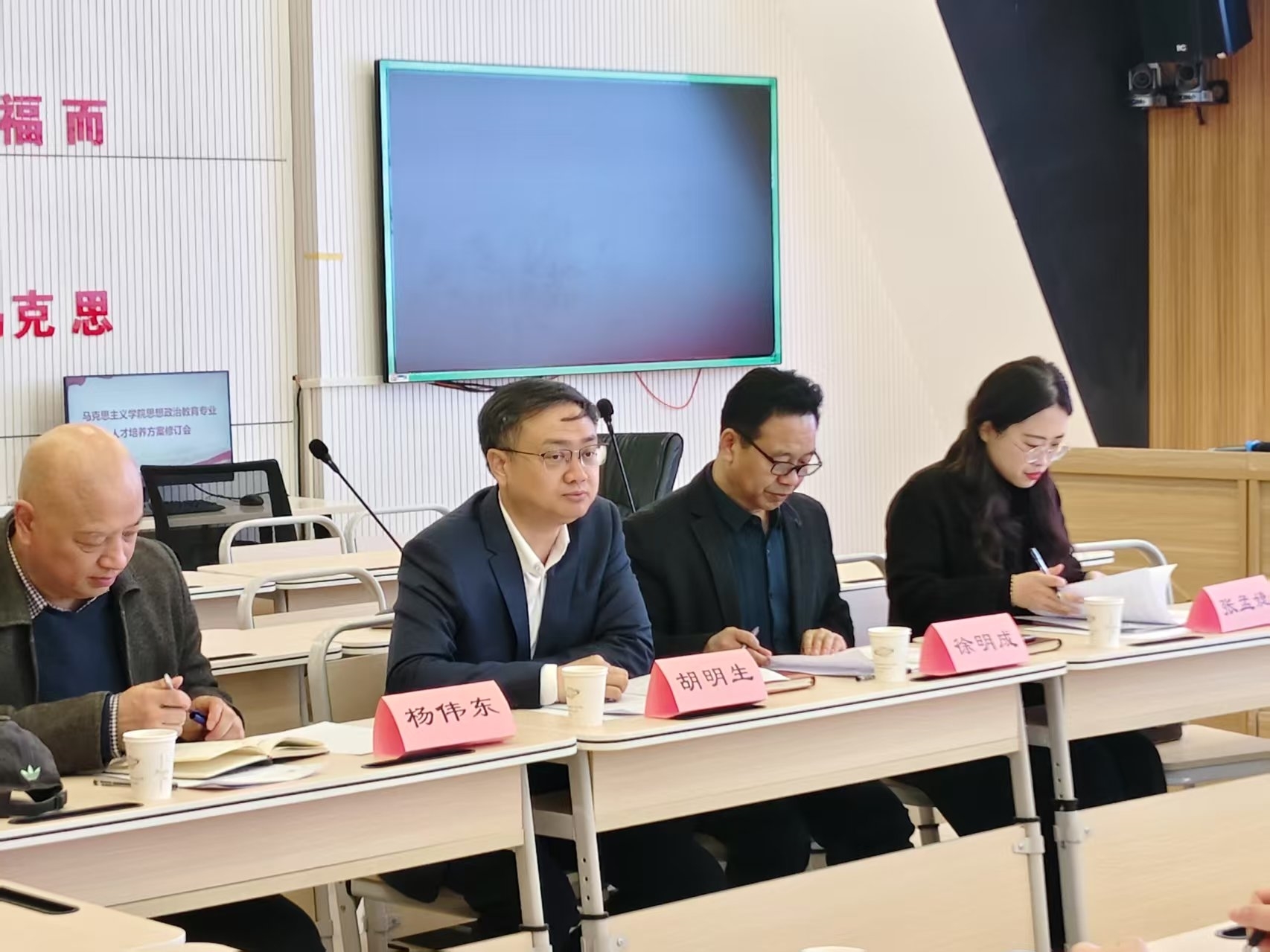 为进一步推进我院思想政治教育专业认证工作,3月20日,马克思主义学院在B309会议室召开“思政专业人才培养方案修订”研讨会。我院特邀请副校长胡明生、河南省基础教育教学研究室中学政治教研员杨伟东主任、教务处处长徐明成、郑州七中金桂校区教师张孟婕齐聚一堂共议思想政治教育专业人才培养方案修订和我院思想政治教育专业认证推进事宜。学院院长任先国、副院长范会平、副书记冯红岩和相关教师参加会议。会议由学院院长任先国主持。
